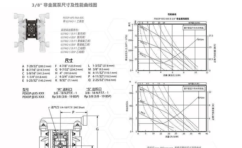 產品型號說明:PX03P-XXS-XXX-B-XX主要性能參數:1:1比率最大流量:40.1LPM進氣口(內螺紋):1/4”流體進口:3/8”,螺紋(側面或中間···