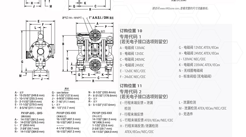 產品型號說明:PX10X-XXS-XXX-B-XX主要參數:1:1比率最大流量:200LPM進氣口(內螺紋):1/4”流體進口:1”,法蘭(側面或中間)/螺紋流···
