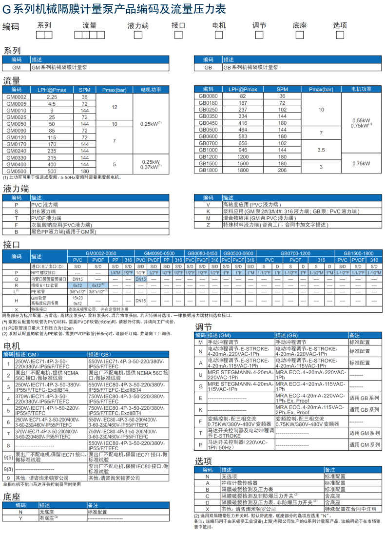 米頓羅GM系列機械隔膜泵型號表: