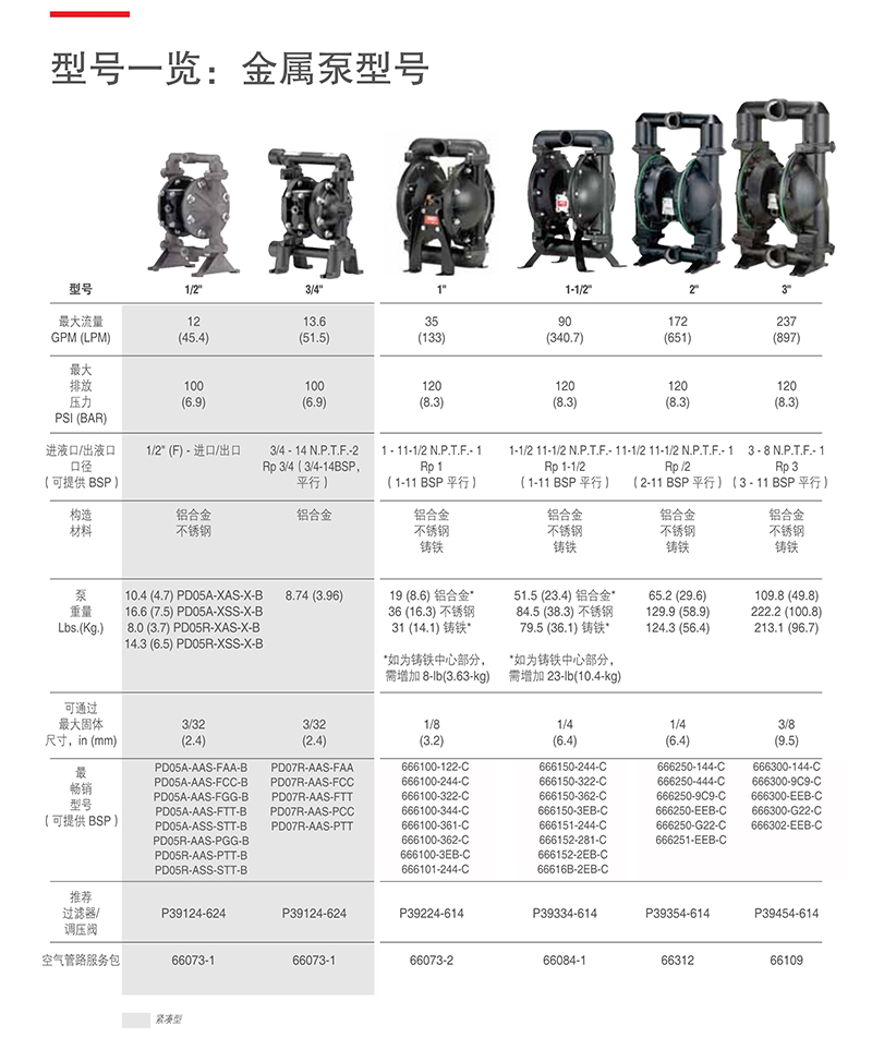 ARO氣動隔膜泵金屬型泵型號大全: